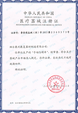 煙臺康利康復(fù)器材制造有限公司成立于1993年。公司自成立以來一致致力于手動輪椅車、電動輪椅車、手搖三輪車、手動護理床、電動護理床、座便椅、洗浴椅、助行器、拐杖等康復(fù)輔助器具的研發(fā)、生產(chǎn)和銷售。經(jīng)過20多年的不懈努力,我們先后研發(fā)和生產(chǎn)了130多個品種的康復(fù)輔助器具,產(chǎn)品銷售覆蓋國內(nèi)95%以上的省市自治區(qū),國外十多個國家和地區(qū),得到了各級政府及最終用戶的信賴與肯定。公司于2000年起先后通過了IS09001質(zhì)量管理體系認(rèn)證、IS013485醫(yī)療器械管理體系認(rèn)證、1S014001環(huán)境管理體系認(rèn)證、職業(yè)健康安全認(rèn)證、售后服務(wù)五星級認(rèn)證、歐盟CE安全認(rèn)證等。